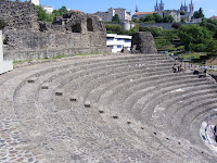 After catching the bus and then the funiculaire (the cable carriage) to the highest point of Lyon, we marvelled at the two Gallo-Roman theatres and the never ending view of the city sprawled below. The ancient amphitheatres were being set-up for